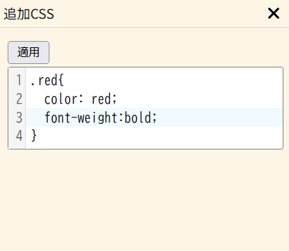 追加CSSパネルは、キャンバスで使用するcssを設定できます。