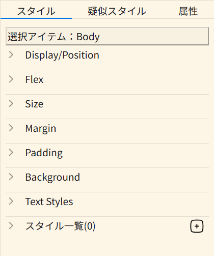 要素設定パネルはキャンバスで選択されている要素のスタイル属性等を設定します。
